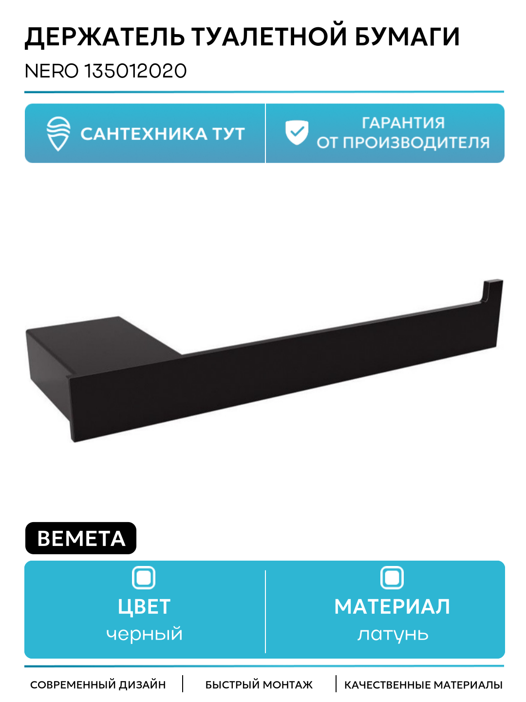 Держатель туалетной бумаги Bemeta Nero 135012020 Черный матовый латунь на стену: сравнение цен, характеристики, фото, актуальное наличие и цены.