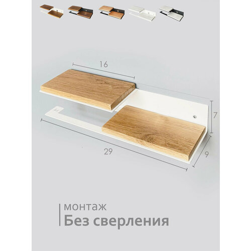 Можно крепить без сверления. Удобный металлический держатель для туалетной бумаги с полочкой для телефона или освежителя. Изделие имеет оригинальный и стильный дизайн. Металлическая часть изготовлена из высокопрочной стали с износостойким полимерным покрытием . Вставка из МДФ с ПВХ покрытием имеет надёжное покрытие. Сделано максимально похоже на натуральное дерево. Бумагодержатель с подставкой станет отличным аксессуаром подойдёт для любой ванной комнате и придаст туалету в доме современный вид . Все наши полки мы изготавливаем сами, отвечаем за качество каждого изделия, дорожим каждым покупателем. Бренд "Молинарди креативо" - Сделано в России. В комплекте идут 2 вида крепления это- дюбель-гвозди и самоклеящиеся крепления , на тот случай если Вы не захотите крепить полочку без сверления.