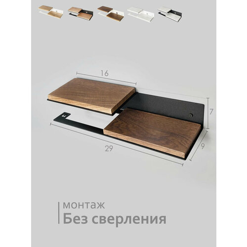 Можно крепить без сверления. Удобный металлический держатель для туалетной бумаги с полочкой для телефона или освежителя. Изделие имеет оригинальный и стильный дизайн. Металлическая часть изготовлена из высокопрочной стали с износостойким полимерным покрытием . Вставка из МДФ с ПВХ покрытием имеет надёжное покрытие. Сделано максимально похоже на натуральное дерево. Бумагодержатель с подставкой станет отличным аксессуаром подойдёт для любой ванной комнате и придаст туалету в доме современный вид . Все наши полки мы изготавливаем сами, отвечаем за качество каждого изделия, дорожим каждым покупателем. Бренд "Молинарди креативо" - Сделано в России. В комплекте идут 2 вида крепления это- дюбель-гвозди и самоклеящиеся крепления , на тот случай если Вы не захотите крепить полочку без сверления.