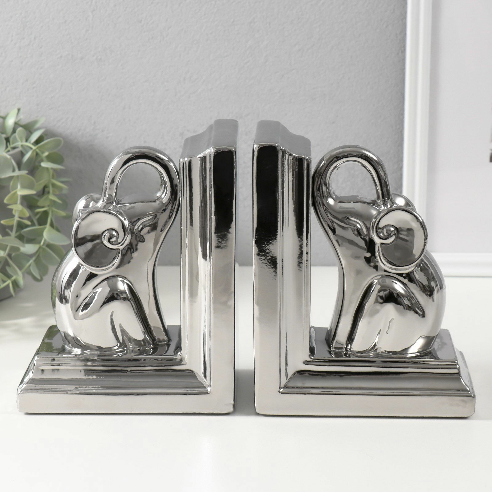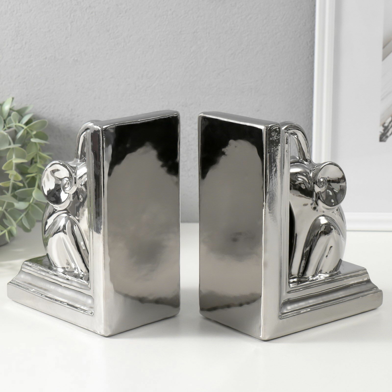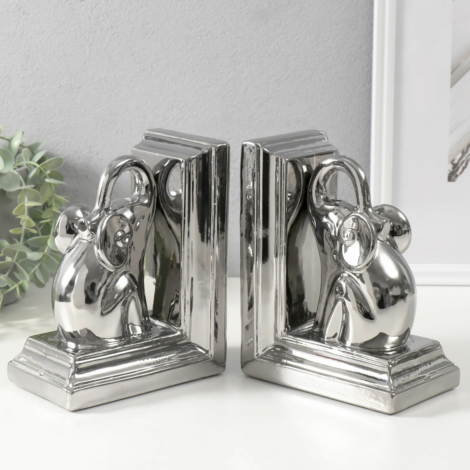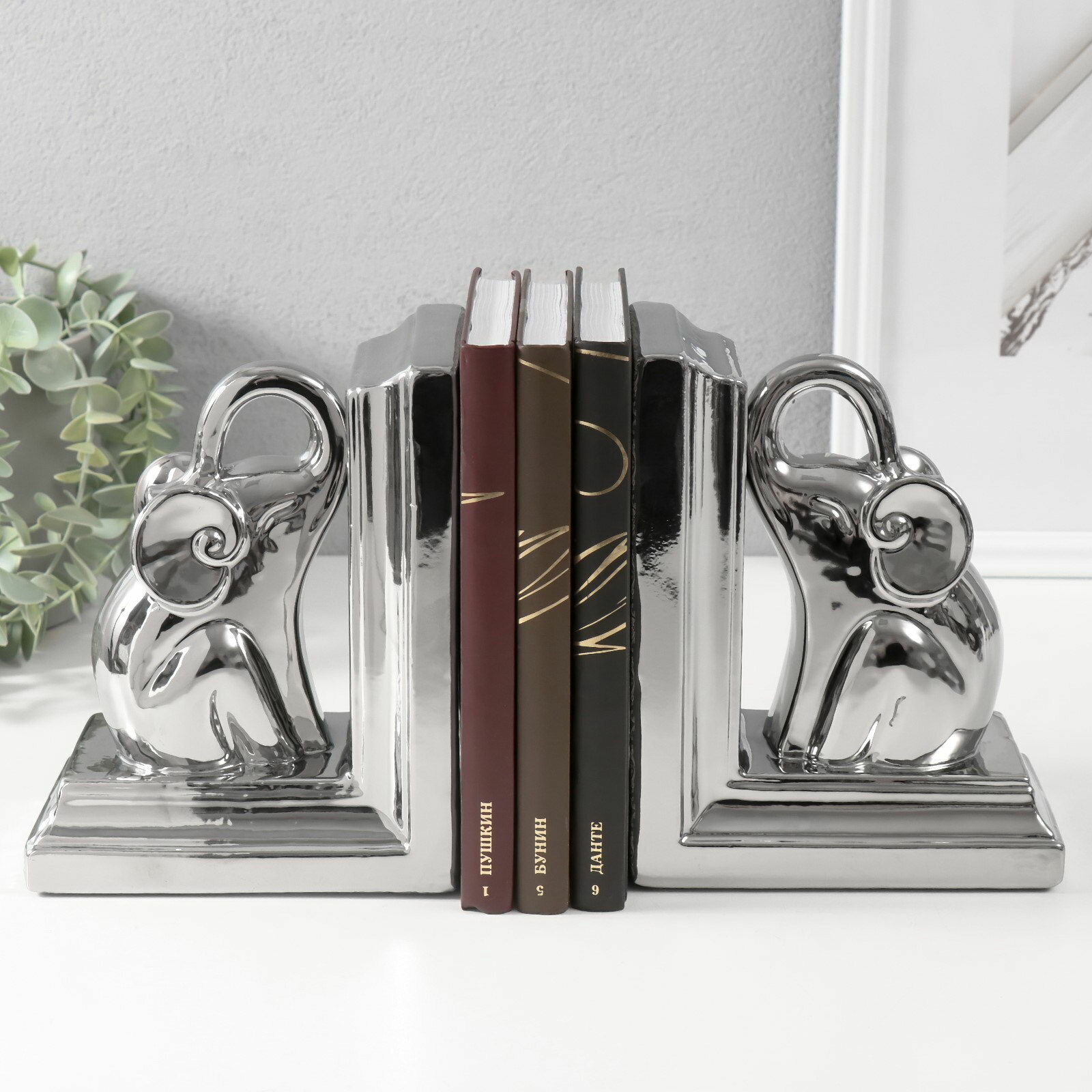 Купить Держатели-подставки для книг на полку «Слоны» керамика, набор 2 шт, серебро, 14.5x9x18 см с доставкой по всей России.