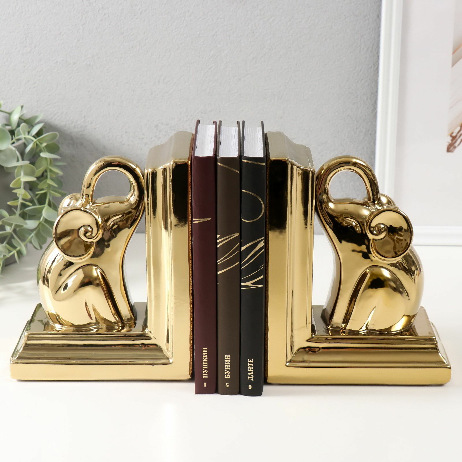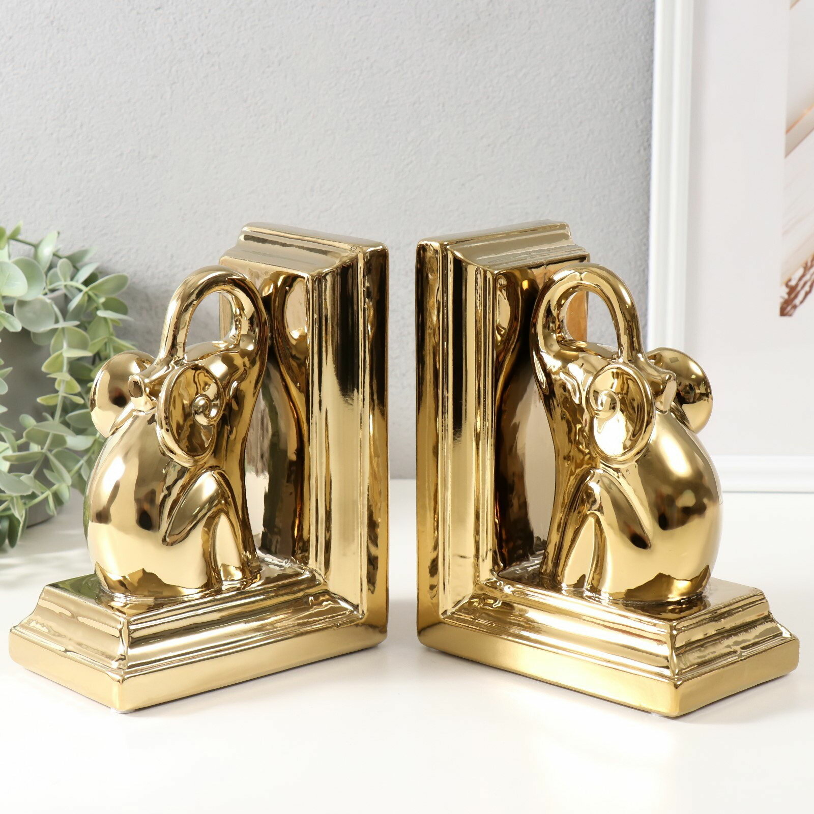 Купить Держатели-подставки для книг на полку «Слоны» керамика, набор 2 шт, золото, 14.5x9x18 см с доставкой по всей России.