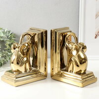 Держатели-подставки для книг на полку «Слоны» керамика, набор 2 шт, золото, 14.5x9x18 см: сравнение цен, характеристики, фото, актуальное наличие и цены.
