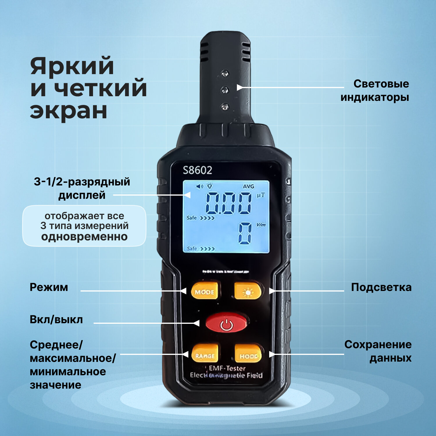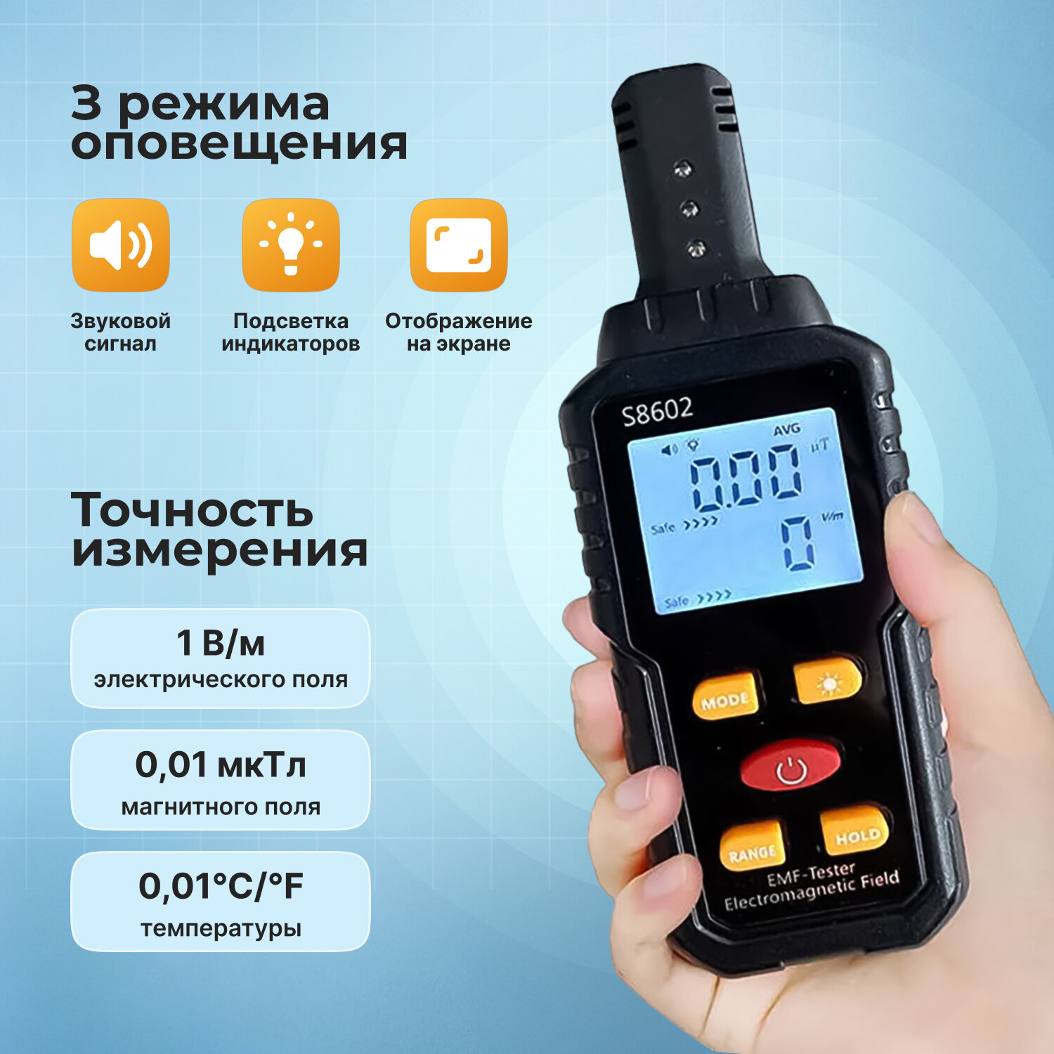Детектор электромагнитного излучения 3-в-1 S8602 (электрическое поле, магнитное поле, температура): сравнение цен, характеристики, фото, актуальное наличие и цены.