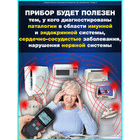 Исследования показали, что при чрезмерном и постоянном воздействии электрического и магнитного поля на организм человека обостряются хронические заболевания. По мнению изготовителя, прибор будет полезен для тех, у кого диагностированы патологии в области иммунной и эндокринной системы, сердечно-сосудистые заболевания, нарушение нервной системы.