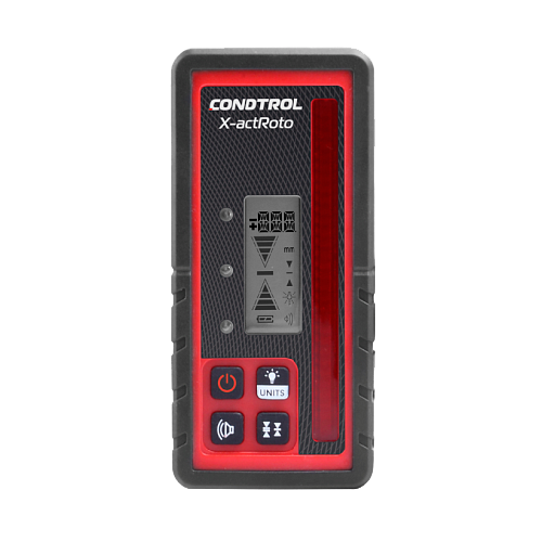 X-actRoto – высокоточный лазерный детектор для ротационных нивелиров фирмы CONDTROL. С помощью него Вы можете измерить расстояние между точкой выхода лазера и отмеченной плоскостью с точностью до миллиметра. Все измерения отображаются на экране.2 дисплея на передней и задней части корпуса позволяют определить отклонение лазерных лучей с обеих сторон детектора.Светодиодные индикаторы детектора указывают отклонение от нулевой точки. Прибор оснащен функцией звукового сигнала для обнаружения лазерных лучей.Вы можете самостоятельно регулировать степень точности (1мм, 2,5мм и 5мм), в зависимости от расстояния до нивелира.Высокий класс защиты IP-65 гарантирует надежную работу в любых условиях.Батарейка 9В обеспечивает непрерывную работу прибора в течении 30 часов.Варианты крепления:Встроенный магнит для крепления на магнитные поверхности.Зажимный винт для крепления зажима к рейкам (идет в комплекте).