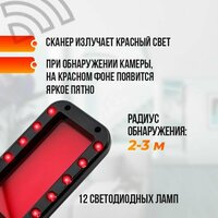 Наш детектор использует передовую лазерную инфракрасную технологию для обнаружения камер-обскура. Он легко обнаруживает скрытые камеры, свет попадает в объектив и преломляется, чтобы найти скрытую камеру.