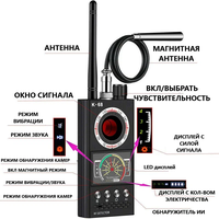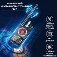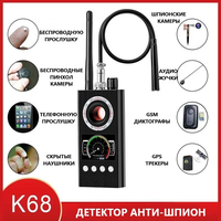 Детектор скрытых камер и жучков модели К68 - это многофункциональный поисковик обновленной версии 2023 года. К68 находит все шпионские приборы, работающие на частотах от 1 mhz до 6.5 ghz, в том числе: мини-камеры, пинхол-камеры, телефонную прослушку, все виды жучков, а также устройства работающие на магнитной основе - скрытые gps-трекеры. Благодаря встроенному мощнейшему аккумулятору, К68 работает гораздо дольше преридущих моделей. После полной зарядки устройство может непрерывно проработать до 35 часов. Если же Вы пользуйтесь редко, Вам не понадобиться заряжать устройство почти месяц. Доступны режим вибрации и звуковой режим сигнала. Наличие LED дисплея. Радиус обнаружения - 15 метров. Незаменимая вещь в поездках, в отелях и гостиницах - проверка и обеспечение собственной безопасности. Отличный подарок мужчине, боссу.