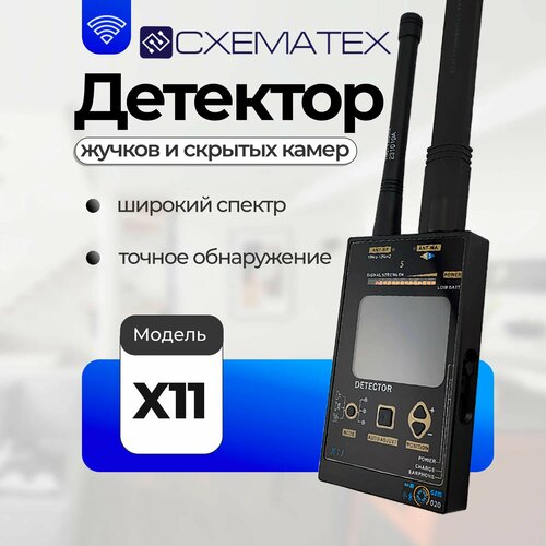 Детектор жучков и скрытых камер X11 - это многофункциональное решение для борьбы с различными видами устройств, включая жучки, автомобильные трекеры, секретное ПО для мобильных телефонов и беспроводные камеры.