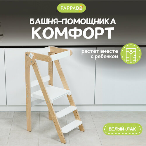 Башня помощника Монтессори «КОМФОРТ» без доски-ограничителя «Pappado», цвет белый + лак: сравнение цен, характеристики, фото, актуальное наличие и цены.