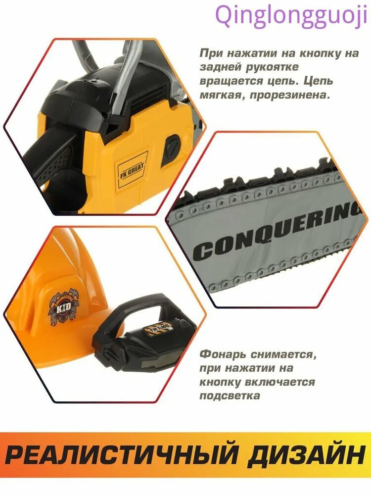 Детская бензопила на батарейках со звуком, Veld Co / Набор инструментов для мальчика / Каска с налобным фонарем для детей: сравнение цен, характеристики, фото, актуальное наличие и цены.