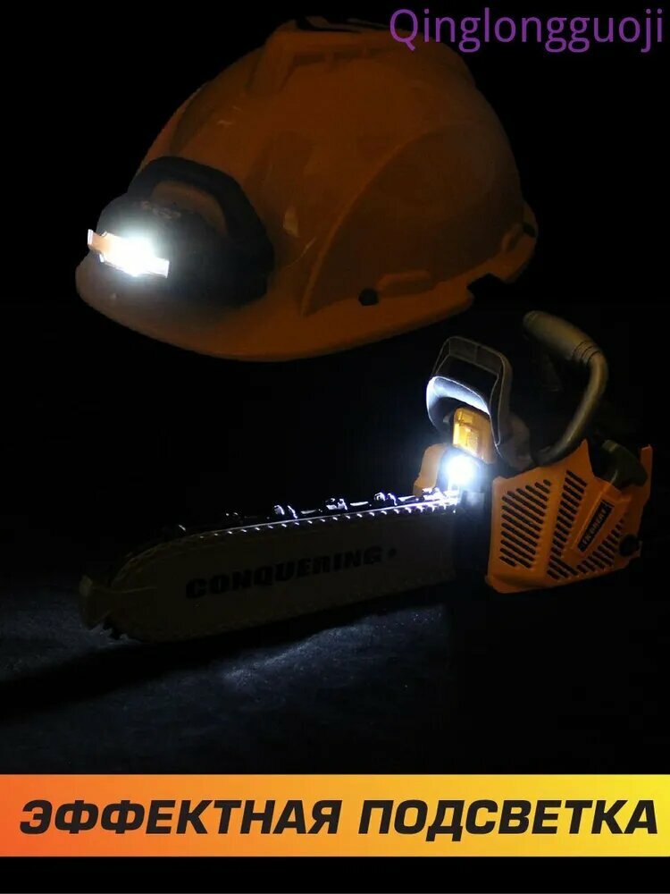 Купить Детская бензопила на батарейках со звуком, Veld Co / Набор инструментов для мальчика / Каска с налобным фонарем для детей с доставкой по всей России.