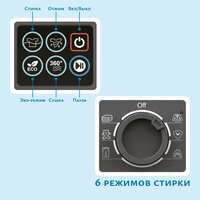 Реалистичные режимы и эффекты • 6 различных режимов «cтирки»: малыш может самостоятельно выбирать подходящую «программу» для каждого случая, тем самым изучая основы ухода за вещами. • Правдоподобные световые и звуковые эффекты: создают эффект настоящей работы стиральной машины и делают процесс игры особенно увлекательным.