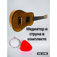 В комплекте медиатор и запасная струна: К гитаре входят медиатор и запасная струна, что обеспечивает дополнительные возможности для игры и замены деталей.
