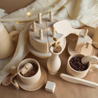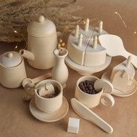 Набор детской деревянной игрушечной посуды с тортом и свечками для игры с куклами станет самым лучшим подарком на день рождения др или на новый год нг детям, малышу, ребенку 1 год, 2 года, 3 года, 4 года, 5 лет, 6 лет, 7 лет для девочки и мальчику! Детская эко игрушка развивайка для малыша, ребенка, девочки и мальчика 1 год, 2 года, 3 года, 4 года, 5 лет, 6 лет, 7 лет в виде игрового деревянного набора детской посудки вызовет восторг юных маленьких хозяек. Они могут устроить день рождения для родителей или своих любимых игрушек и кукол. Детская игровая деревянная кухня преобразится с этим набором деревянной посудки для игры. Набор игрушечной посуды не только красиво выглядит на игровой детской кухне, но и способствует развитию фантазии и воображения ребенка, что особенно важно при раннем развитии детей. С детским игровым набором посудки можно придумать множество различных сюжетно-ролевых игр: приготовить угощения для любимых кукол и игрушек, приглашать лучших друзей в гости и устроить праздник с тортом со свечками. Также сюжетно-ролевые развивающие игры с тактильно приятными, как будто теплыми, деревянными игрушками развивашками для раннего развития малышей способствуют развитию мелкой моторики и речи. А после игры деревянная игрушечная посудка станет прекрасным элементом декора любой детской комнаты. Все предметы в наборе детской посуды изготовлены вручную из дерева и бережно отшлифованы, поэтому очень тактильно приятны на ощупь. А еще деревянные игрушки заготовки отлично подойдут для творчества, росписи, рукоделия и поделок. В набор деревянной игрушечной посуды для детей входит 15 предметов: турка - 1 шт; нож - 1 шт; лопатка - 1 шт; чашка - 2 шт; чайная ложка - 2 шт, кусочек сахара - 2 шт; блюдце для чашки - 2 шт; сахарница - 1 шт; подставка для торта - 1 шт; торт из 6 кусочков со свечками - 1 шт. Все наборы нашей детской деревянной игрушечной посудки отлично сочетаются друг с другом.