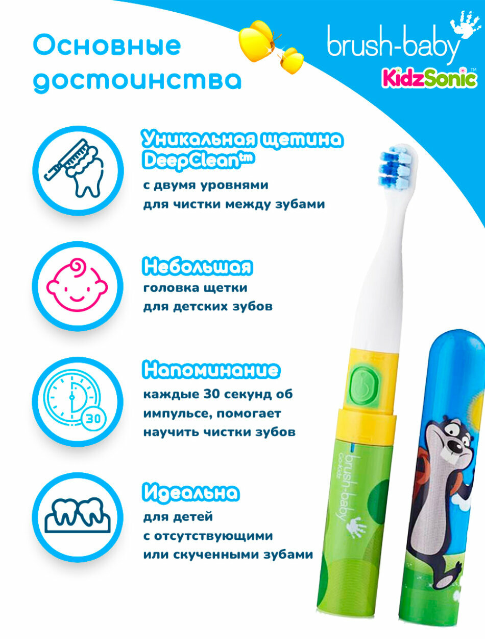 Детская электрическая зубная щетка Go-Kidz Mikey, от 3 лет, зеленая: сравнение цен, характеристики, фото, актуальное наличие и цены.
