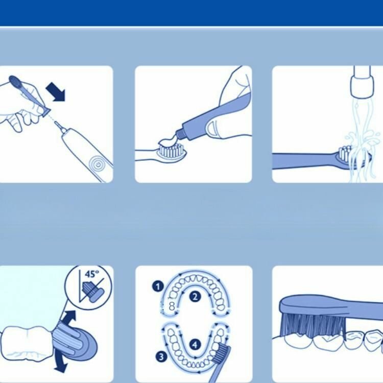 | Дополнительные функции | датчик нажима, подходит для детей, режим привыкания, таймер времени чистки, таймер смены области чистки |