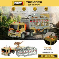 Купить Детская фрикционная машина со светом и звуком 1:16, Drift / Игрушка трейлер с динозавром / Игрушечная машинка грузовик спецтехника для мальчика с доставкой по всей России.
