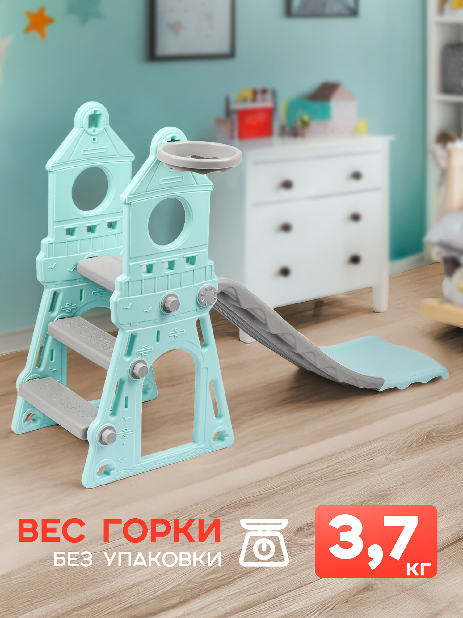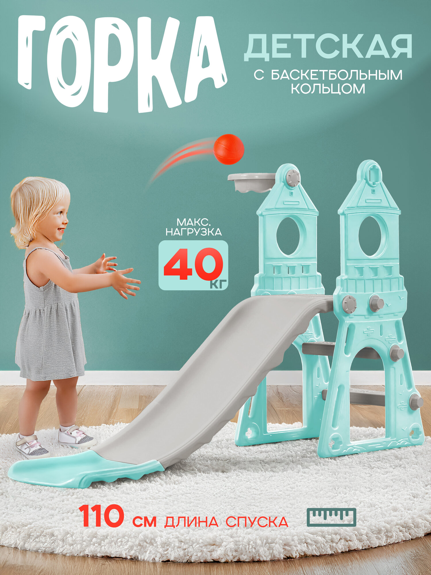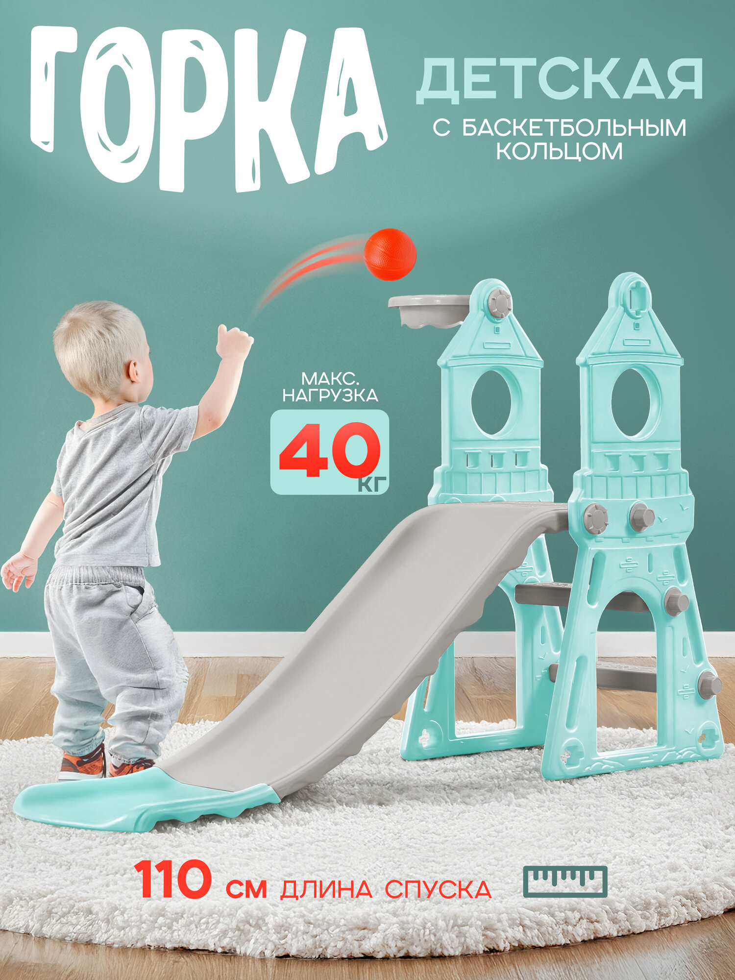 Дети обожают кататься с горки – это не только забавное развлечение, но и отличная физическая активность. Детская горка для катания с баскетбольным кольцом подарит массу положительных эмоций малышу. Она выполнена из прочного пластика и рассчитана на детей от 1,5 до 4 лет. Просыпаясь утром, ребенок с радостью будет бежать на свою горку, чтобы начать день со спортивной зарядки и веселых приключений.