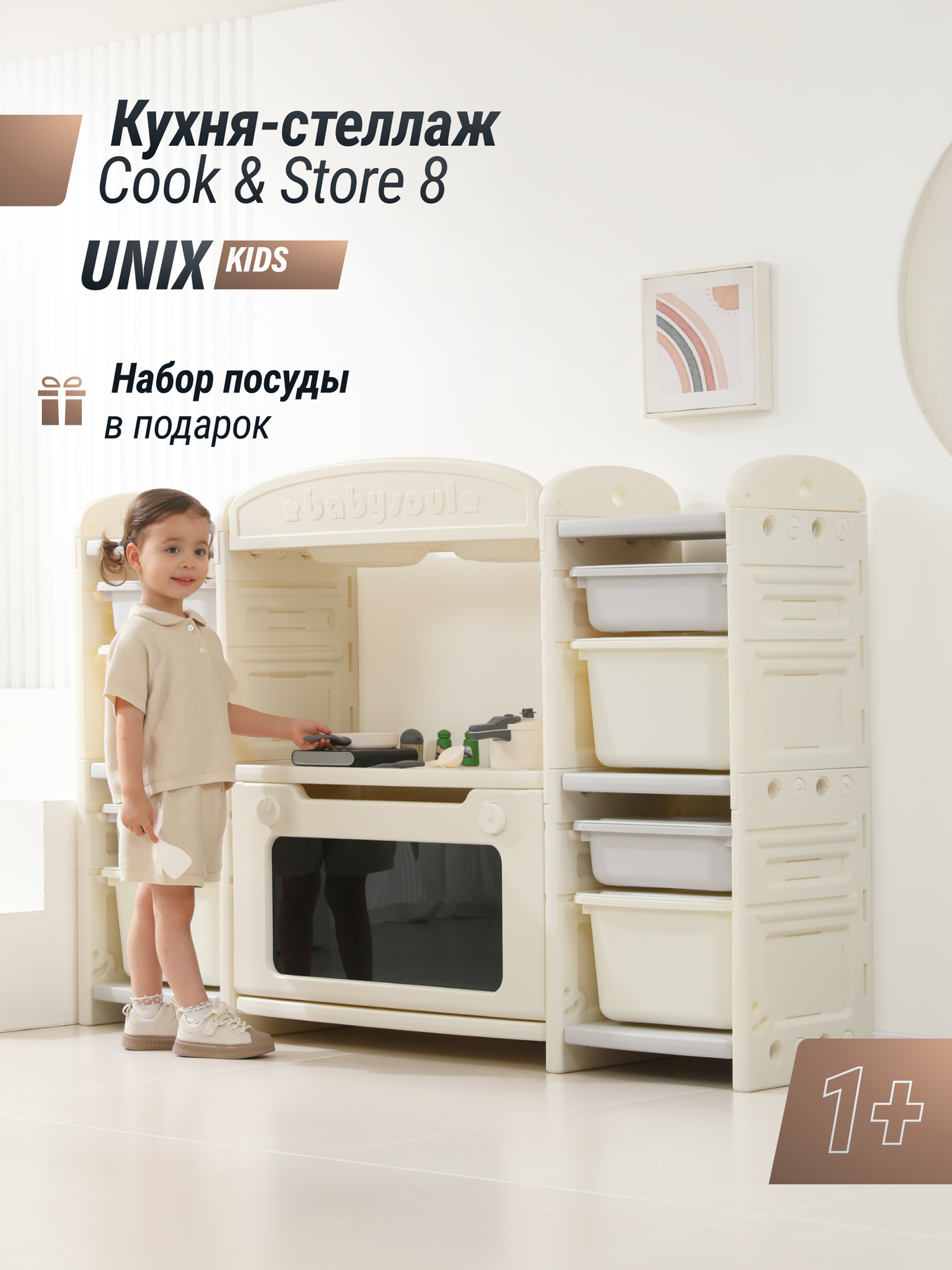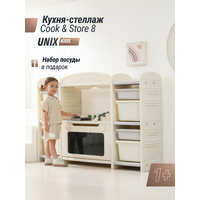 Детская игровая кухня UNIX Kids Cook & Store 8 станет настоящим центром притяжения для любого ребенка! Кухня с плитой, духовкой, холодильником, корпусным стеллажом с ящиками и полным набором посуды не только подарит малышу множество часов увлекательной игры, но и поможет развить важные навыки, такие как ролевая игра, воображение и мелкая моторика.