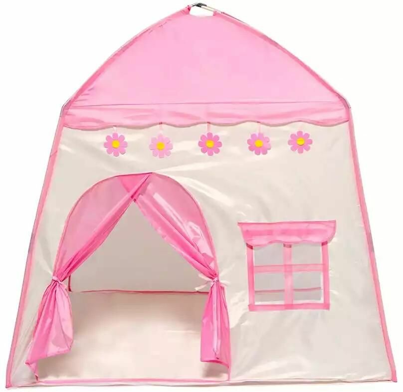 Купить Детская игровая палатка КНР «Шатер розовый с цветами» размер 130х100х130 см, в сумке с доставкой по всей России.