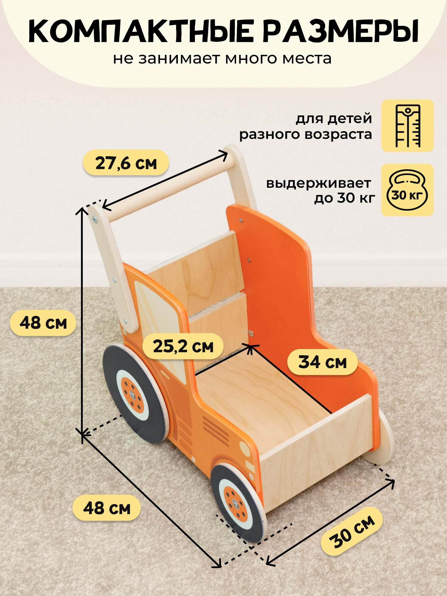 ✔ 3 функции в 1 — опора для ходьбы, каталка и игровая тележка ✔ Безопасные материалы — березовая фанера + гипоаллергенная краска ✔ Устойчивые колеса — плавное движение без скольжения ✔ Стильные цвета — нейтральные и современные ✔ Компактный размер — удобно хранить