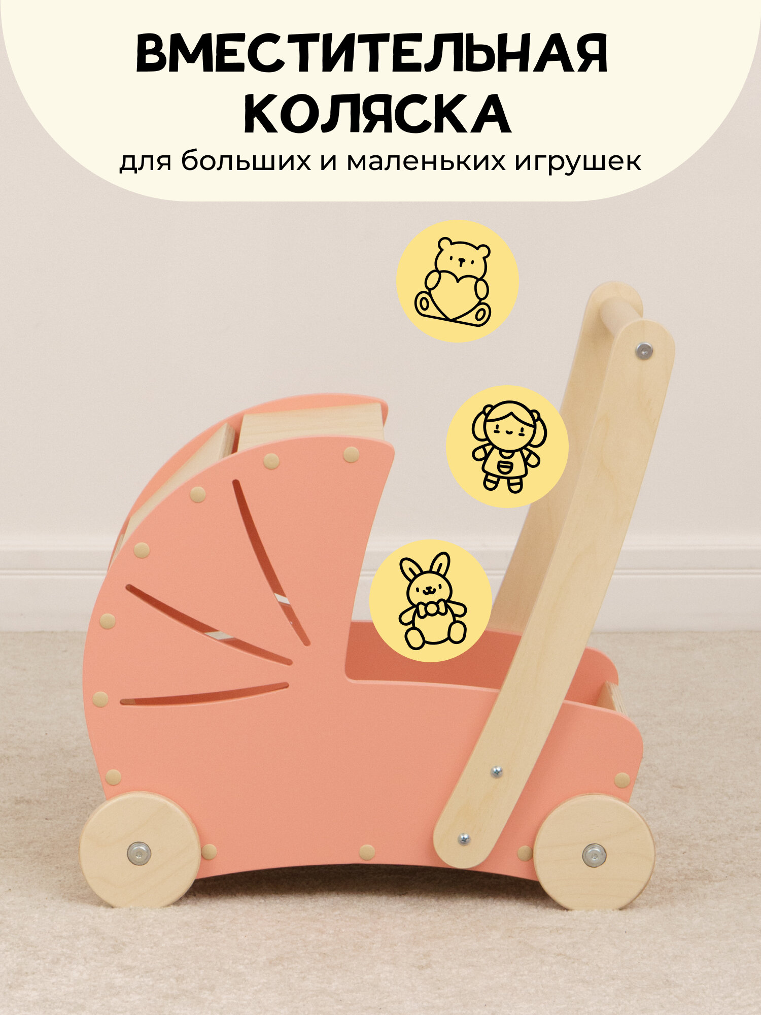 ✔ 3 функции в 1 — опора для ходьбы, каталка и игровая тележка