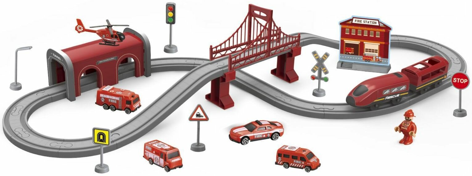 Купить Детская игрушечная железная дорога «Экспресс» электрическая, 66 деталей, в наборе поезд на 2 вагона, мост, работает от батареек, подходит для деревянных железных дорог с доставкой по всей России.