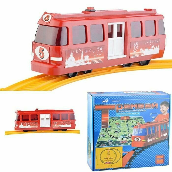 Купить Детская игрушечная железная дорога «Трамвай» с пантографом заводная, игрушечный транспорт на батарейках, набор с игровым полем и рельсами с доставкой по всей России.