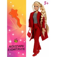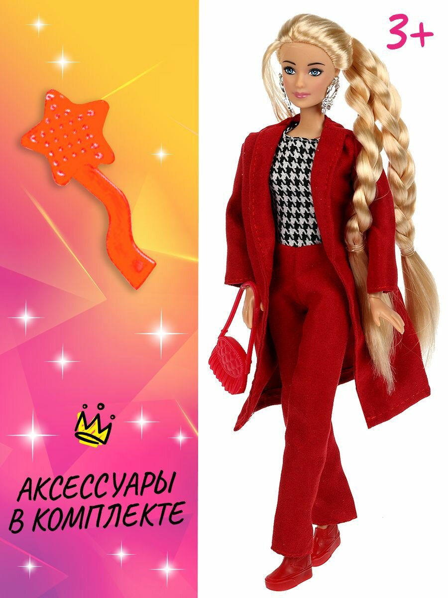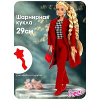 Купить Детская игрушка для девочки шарнирная кукла София Модница в длинном осеннем пальто, с аксессуарами, 29 см, Карапуз / подарок ребенку от 3 лет с доставкой по всей России.