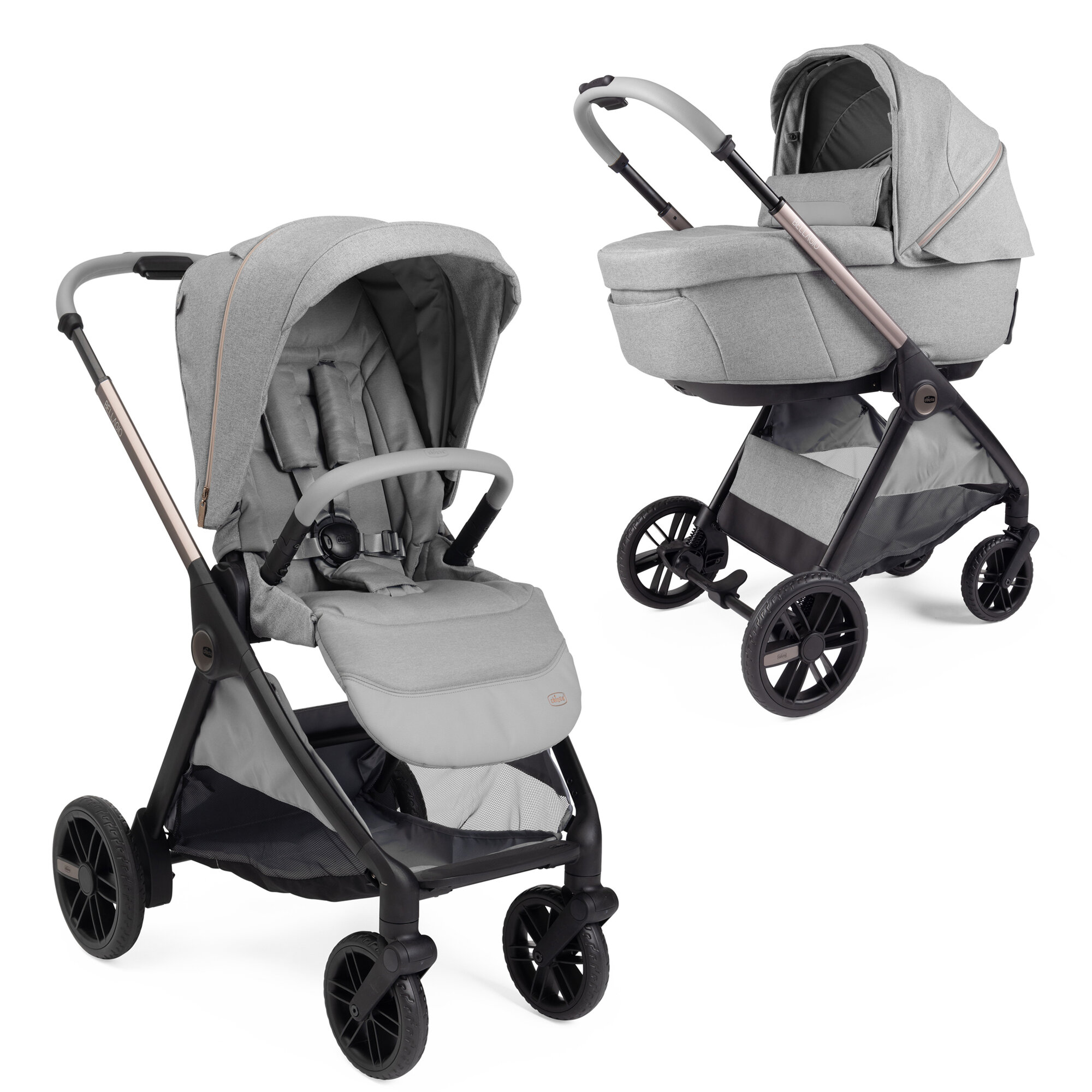 Купить Детская коляска 2в1 Chicco Bellagio, цвет Lunar Rock (Серый), артикул производителя 00087136400000 / 00087135400000 с доставкой по всей России.