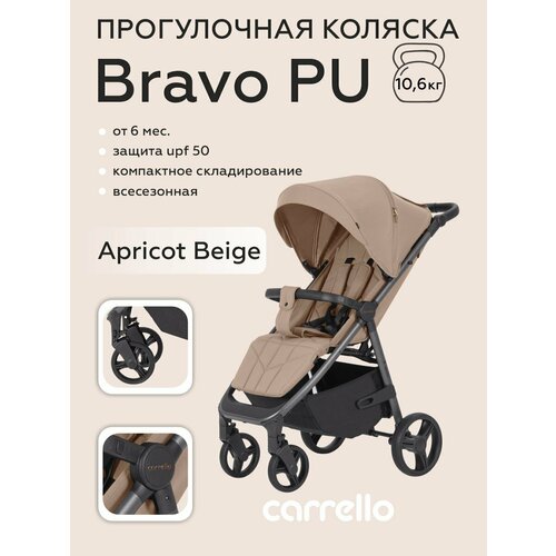 Детская коляска CARRELLO Bravo CRL-8512 PU Apricot Beige 2025 года, резиновые колеса: сравнение цен, характеристики, фото, актуальное наличие и цены.