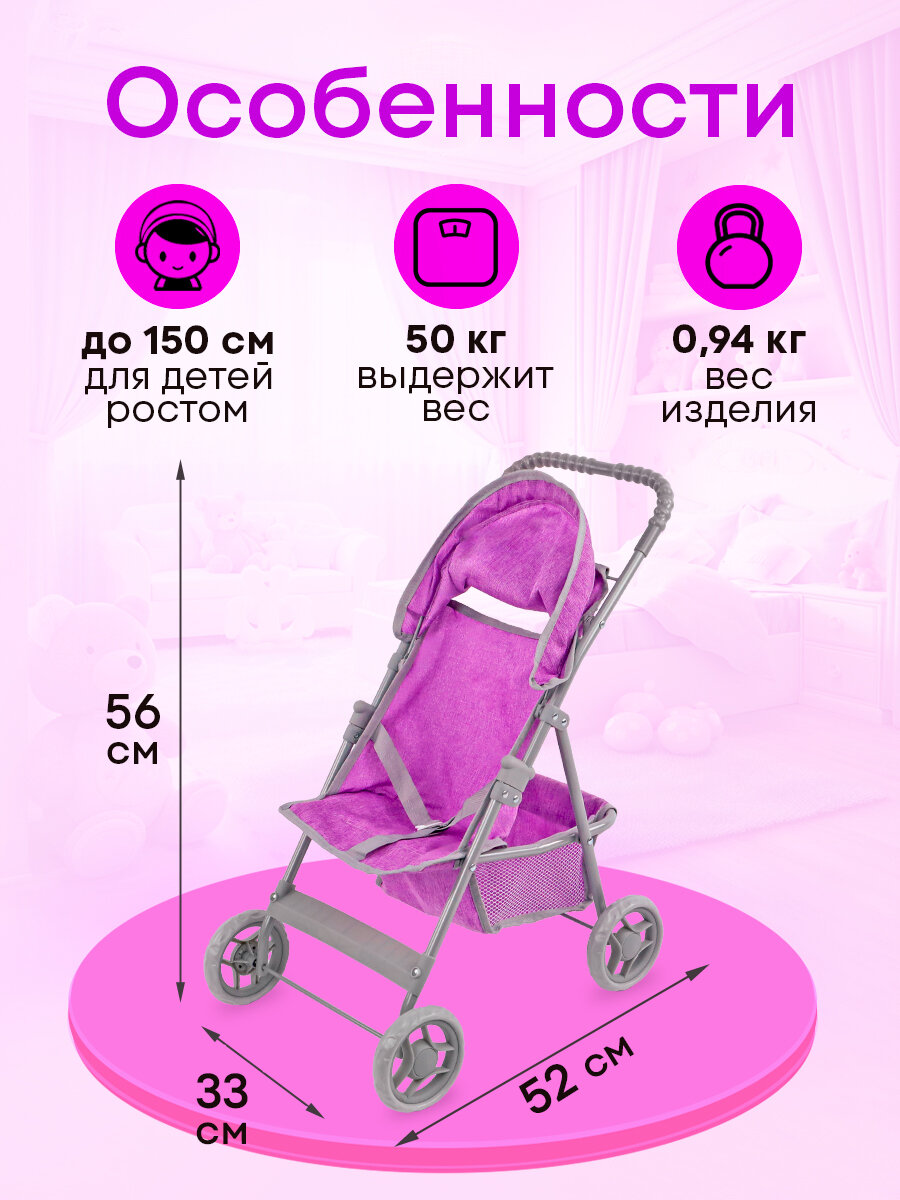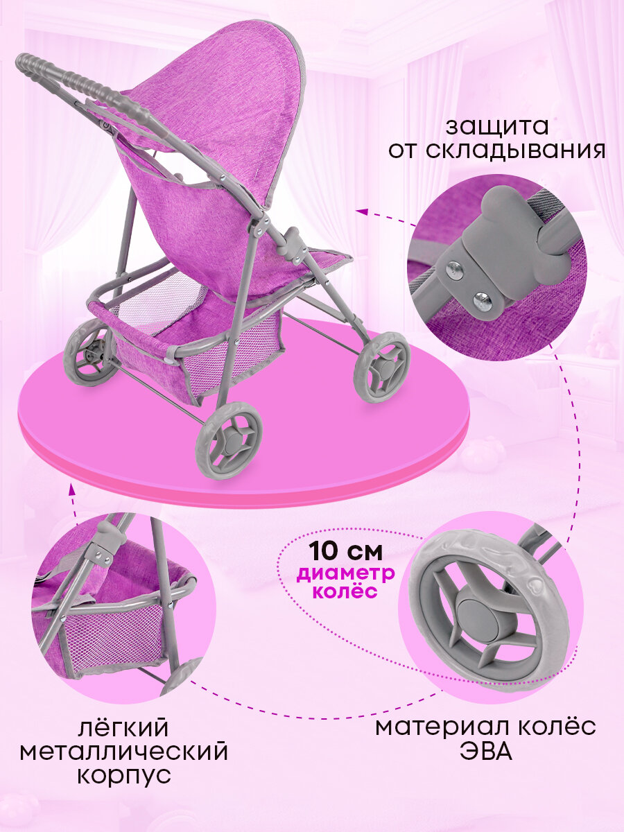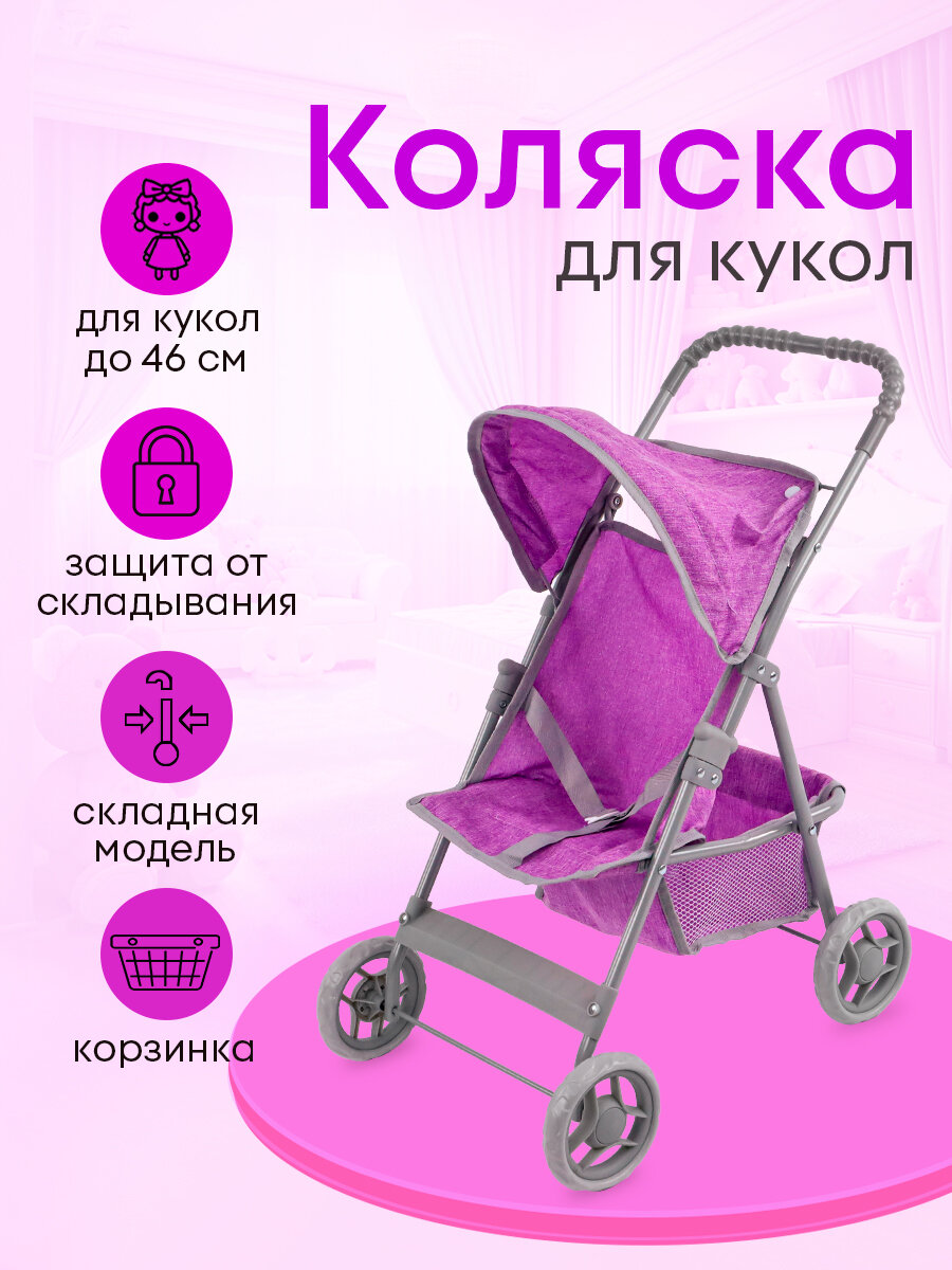 Детская коляска для кукол до 46 см, металлическая, складная с корзиной, 56х33х52 см. Подарок для девочек.: сравнение цен, характеристики, фото, актуальное наличие и цены.
