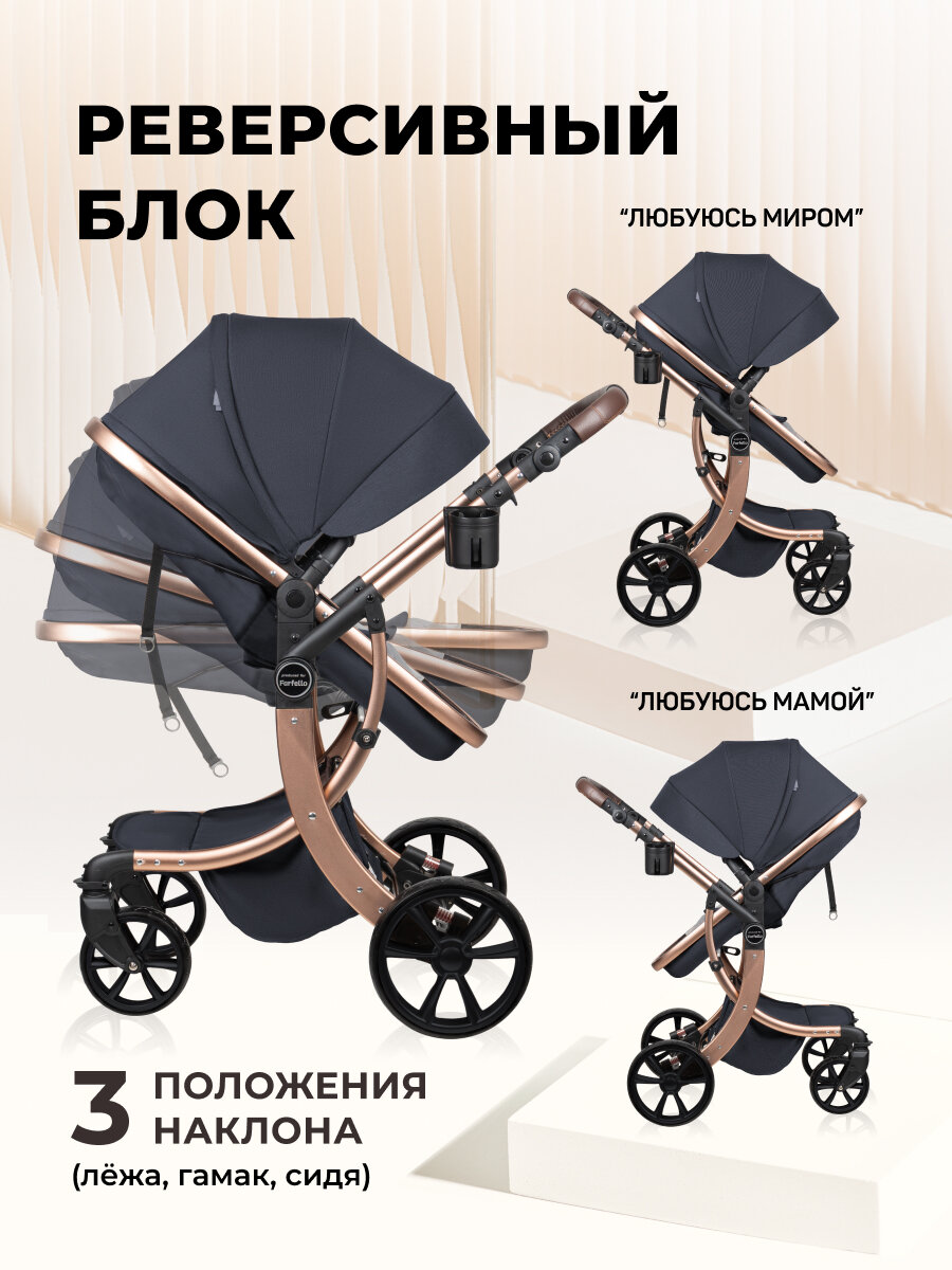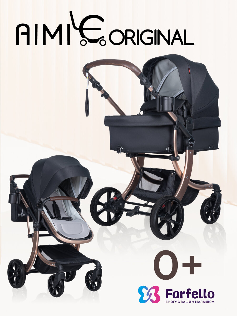 Aimile Original New Gold - новинка коллекции Весна-Лето 2021г, выполненная на стильной золотой раме. Коляска Aimile Original - это по-прежнему самая популярная универсальная коляска, лёгкая, стильная, манёвренная. Главные достоинства модели: реверсивный блок - возможность устанавливать по ходу движения или лицом к родителям, Европейская ткань плотного плетения 600D с водоотталкивающей пропиткой, утепленный флисовый конверт - теплая защита малыша в прохладные дни. Длина конверта позволяет его использовать с рождения до 1 года. Конверт состоит из трех слоев: 1. Наружная ткань - плотная Европейская ткань, защищающая от ветра и мокрого снега, 2. В качестве наполнителя используется 100% полиэфир 3. Внутренний слой выполнен из приятной флисовой ткани. Круговая молния облегчает размещение ребенка в конверте, с внутренней стороны замок прошит дополнительно защитной тесьмой, для удобства и безопасности. Благодаря полностью съемной верхней части, аксессуар можно использовать в качестве теплого матрасика в коляску. спальный блок выполнен из двух слоев ткани, всесезонная коляска подходит для круглогодичного использования, легкость трансформации, удобная компактная конструкция: не нужно искать дома дополнительное место для хранения отдельного прогулочного блока, три положения спинки прогулочного блока: 90°, 120° и 180°, широкий отворот для защиты от ветра. При необходимости его можно развернуть на всю длину и закрепить за капюшон. Холодный ветер и снег не побеспокоят малыша во время прогулки, увеличенный полог для ног, колеса PU: мягкая амортизация всех 4-х колес обеспечивает безупречную маневренность и комфорт, легкая алюминиваемая рама, передние поворотные колеса с возможностью фиксации, обеспечивают легкую маневренность, все колеса съемные, после прогулки вы без труда сможете снять, помыть, для дальнейшего хранения коляски дома, бампер и родительская ручка выполнены из экокожи, с отстрочкой увеличивающей срок эксплуатации и препятствующей скольжению рук, родительская ручка регулируется в 5 положениях по высоте, от 81 см до 108 см. Коляска комплектуется удобным подстаканником, большим многофункциональным флисовым конвертом для ребенка, дождевиком и сумкой органайзером. Инструкция по сборке детской коляски трансформер позволит легко разобраться как сложить коляску. Дополнительно к коляске можно приобрести переносную автолюльку модели Farfello KS-2150a, выполненную из аналогичной Европейской ткани в цвет коляски.