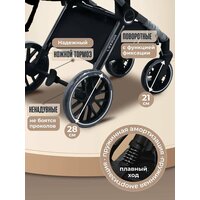 Характеристики колёс • Диаметр передних колёс: 21 см — позволяют легко маневрировать и разворачиваться. • Диаметр задних колёс: 28 см — обеспечивают устойчивость и плавность хода.