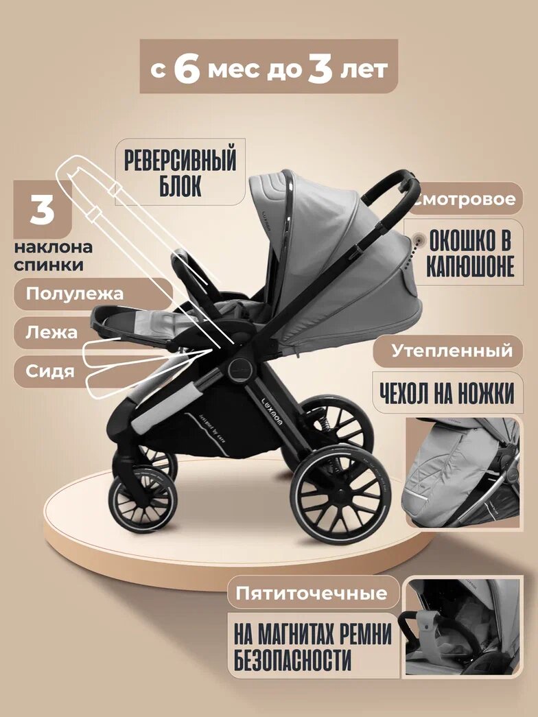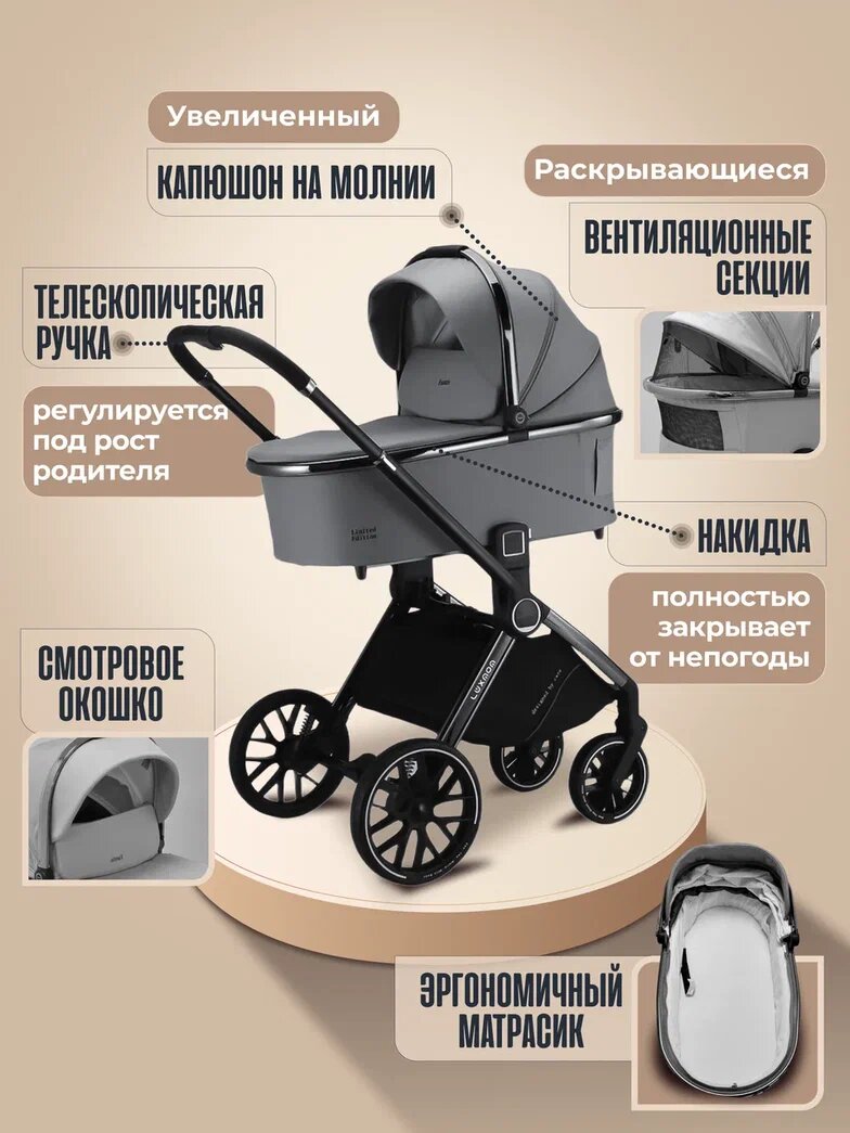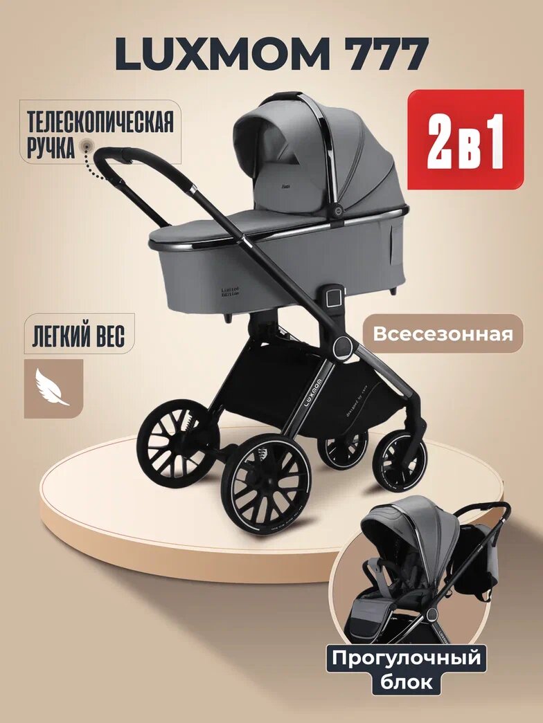 Купить Детская коляска трансформер 2 в 1 LUXMOM 777 new 2025 Серая Полная комплектация с доставкой по всей России.