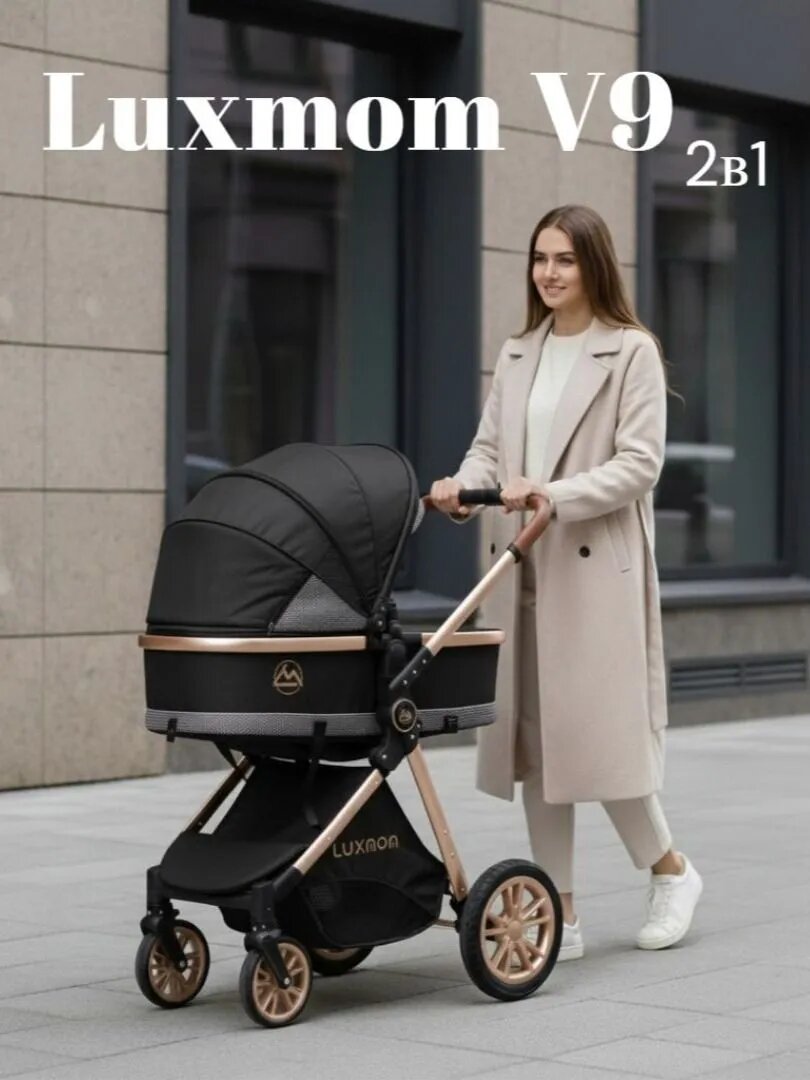 Детская коляска трансформер 2 в 1 LUXMOM V9 для новорожденных автокресло 0+ Черная: сравнение цен, характеристики, фото, актуальное наличие и цены.