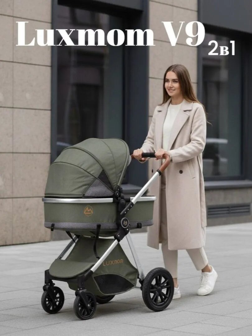 Детская коляска трансформер 2 в 1 LUXMOM V9 для новорожденных Оливковая: сравнение цен, характеристики, фото, актуальное наличие и цены.