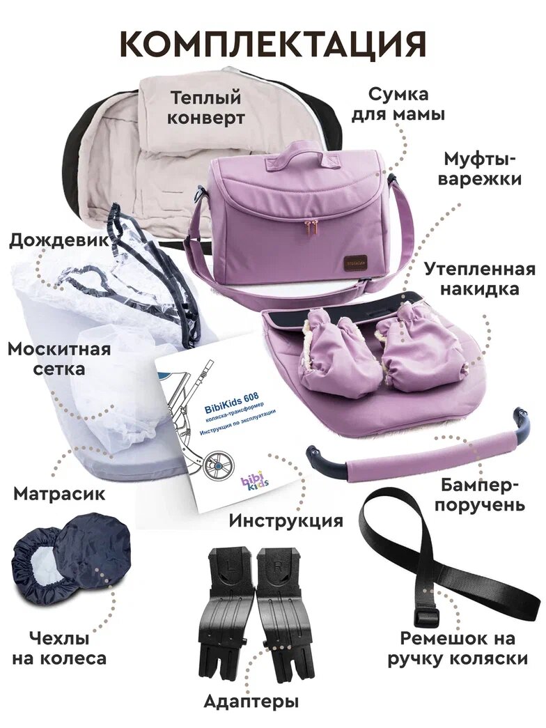 Купить Детская коляска трансформер 3 в 1 BibiKids 608 для новорожденных до 3-х лет 2025 Полный комплект с доставкой по всей России.