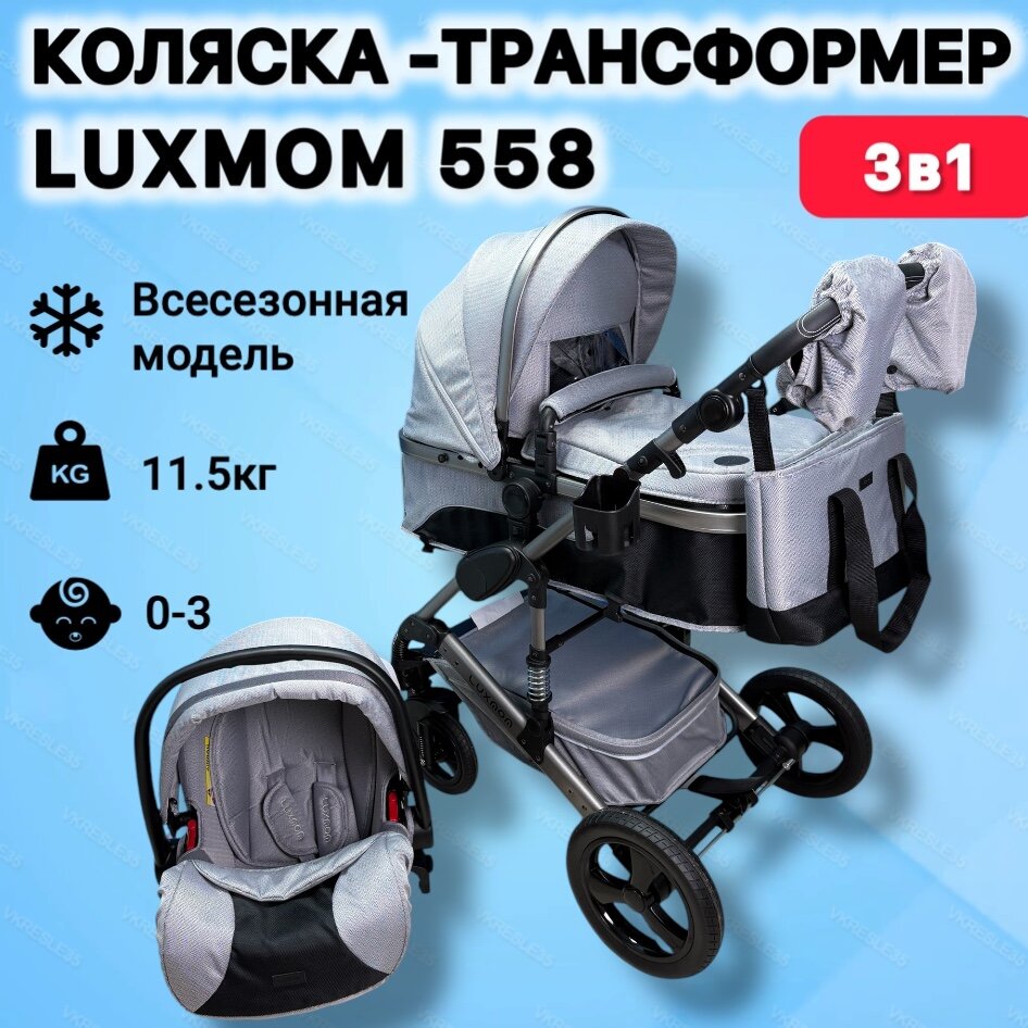 Детская коляска-трансформер 3 в 1 Luxmom 558, серый: сравнение цен, характеристики, фото, актуальное наличие и цены.