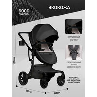 1. Коляска - трансформер Aimile PRO подходит для круглогодичного использования, капюшон и полог для люльки выполнен из экокожи, она проста в уходе (чтобы привести внешний вид в порядок, достаточно протереть влажной салфеткой).