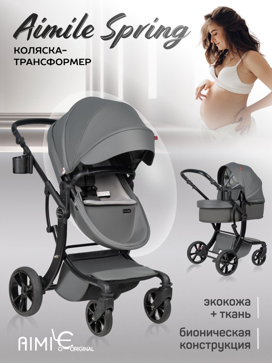 Детская коляска-трансформер Aimile Original Spring, для новорожденных, экокожа, цвет темно-серый: сравнение цен, характеристики, фото, актуальное наличие и цены.