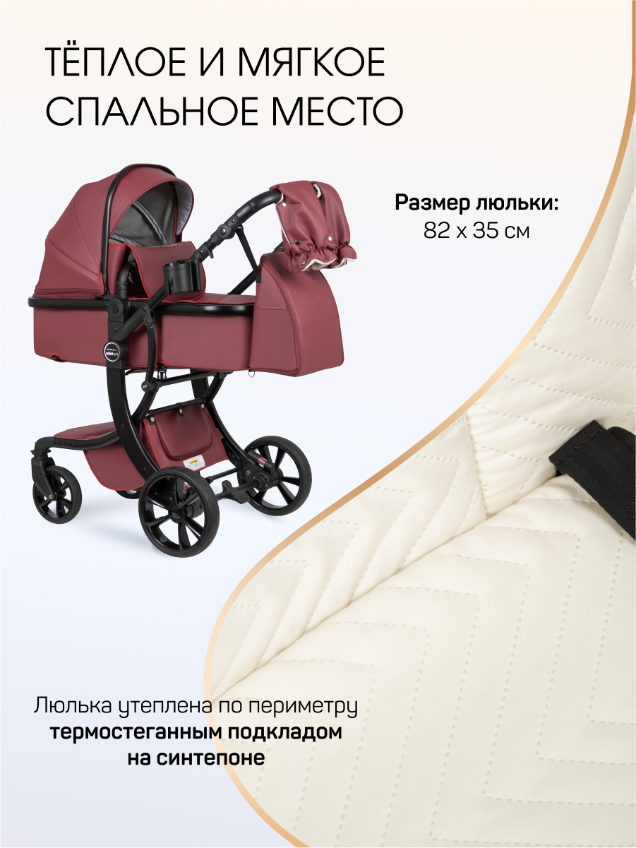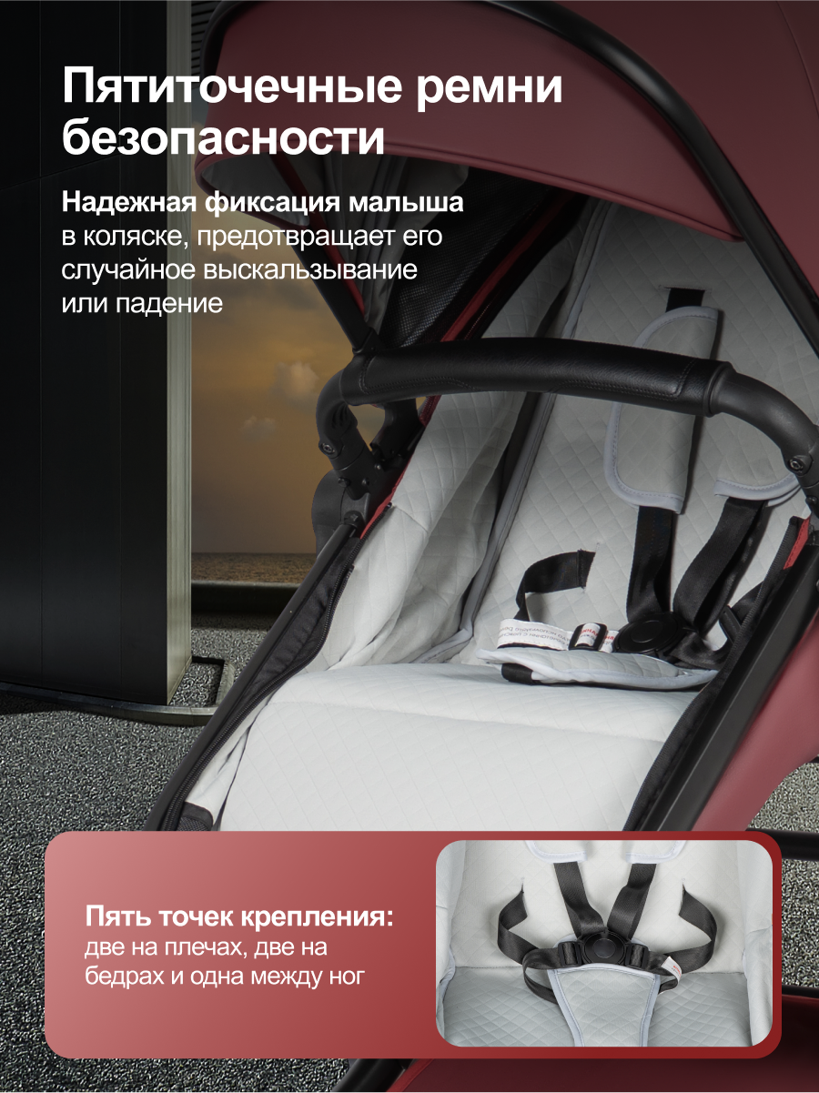 • Круглогодичное использование: коляска адаптирована для любых погодных условий, делая прогулки приятными в любое время года.