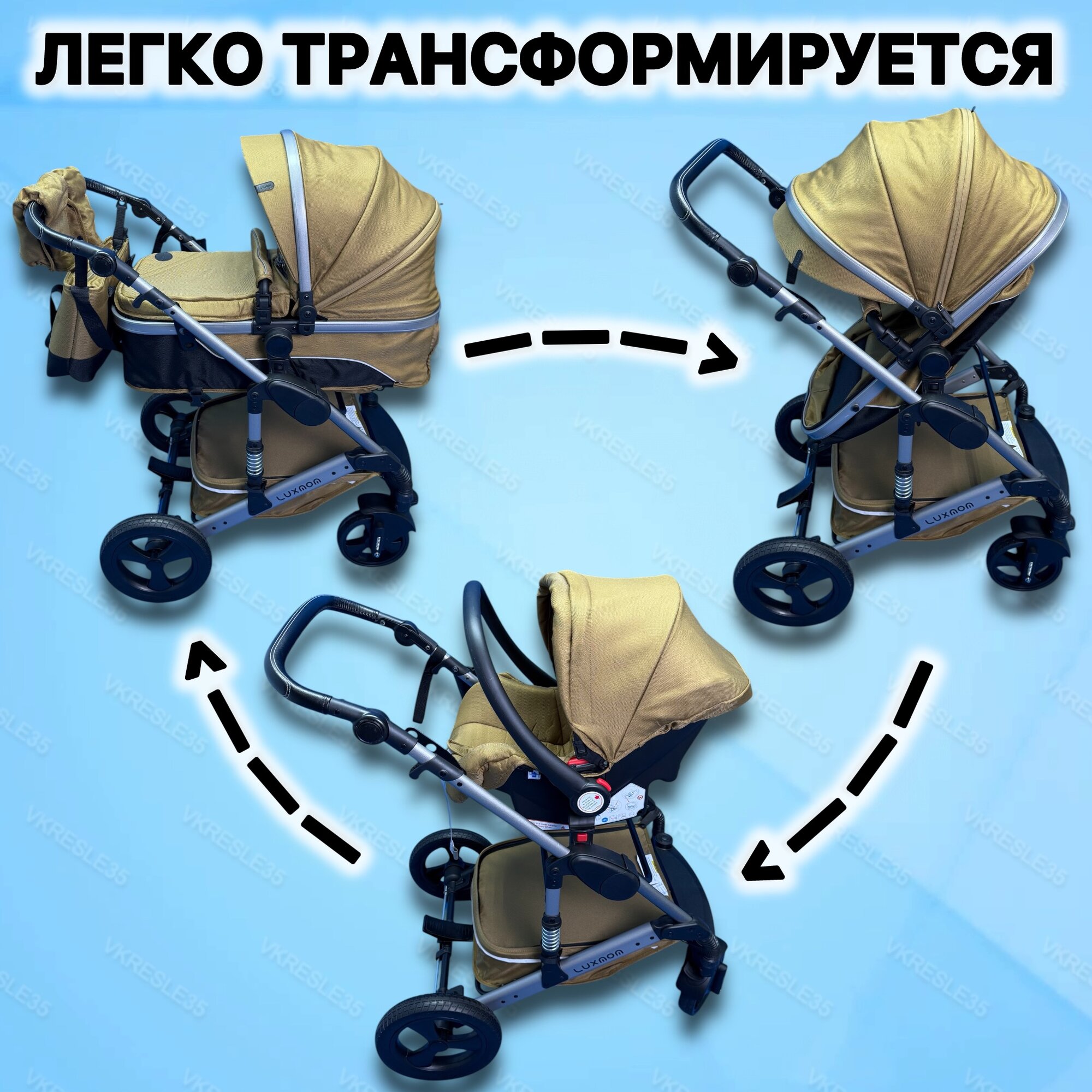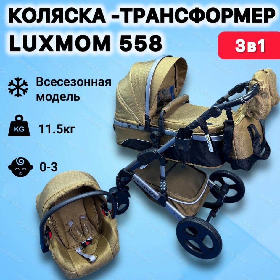 Детская коляска-трансформер Luxmom 558 3 в 1 для новорожденных, цвет песочный: сравнение цен, характеристики, фото, актуальное наличие и цены.