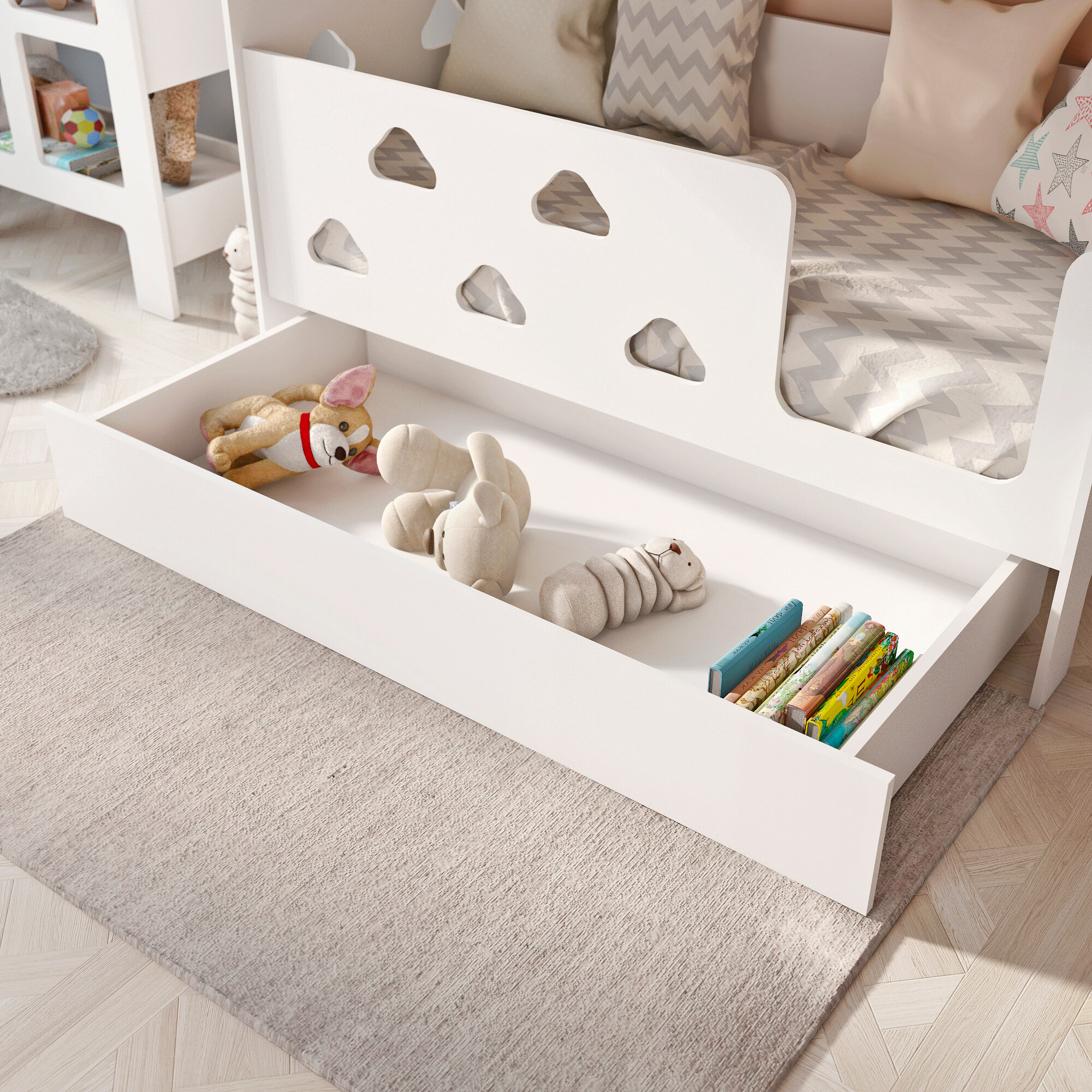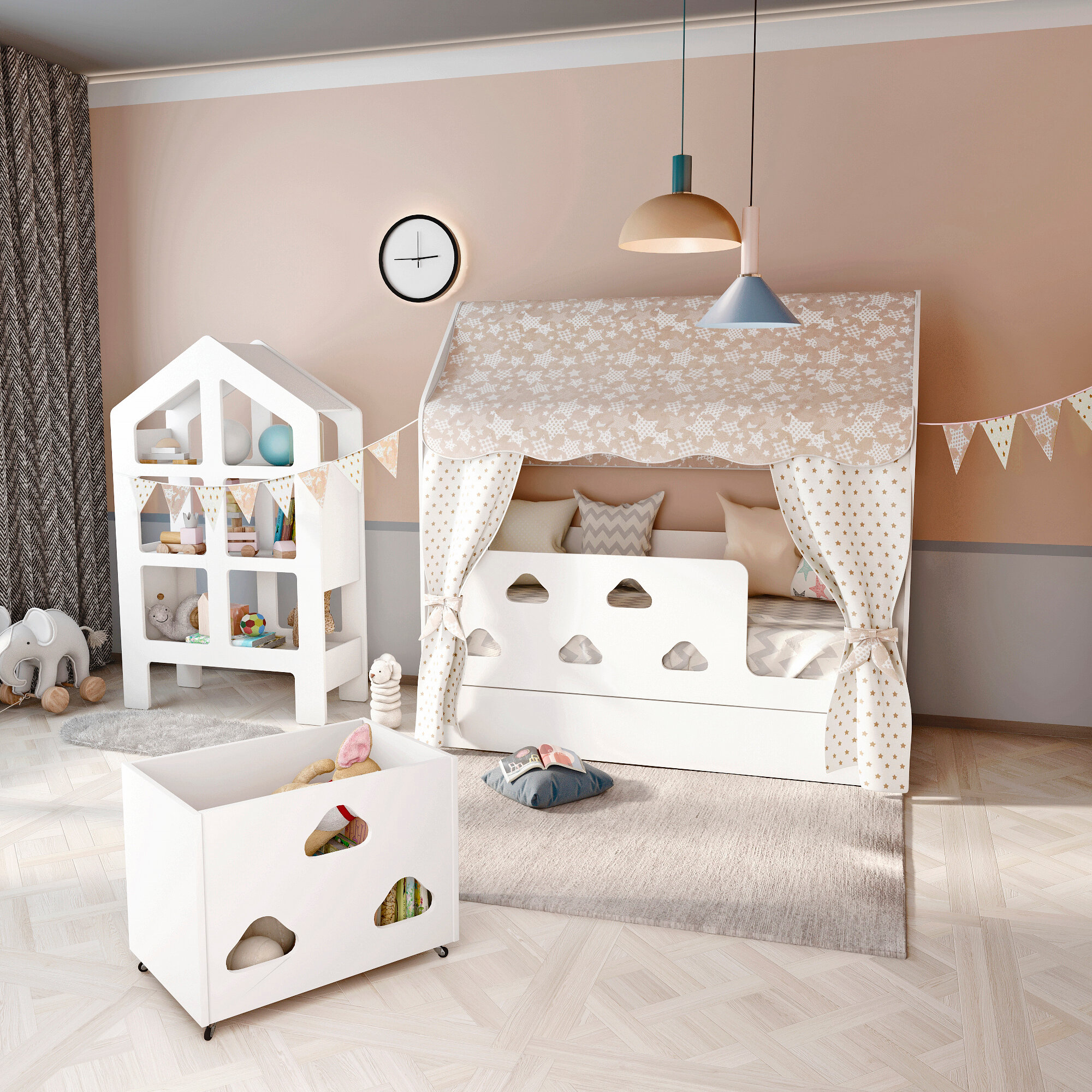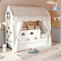 Детская кровать домик с текстилем и ящиком (бежевый, со звездами, вход справа) «Облачка»: сравнение цен, характеристики, фото, актуальное наличие и цены.