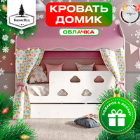 Купить Кровать детская домик «Облачка» с текстилем (розовый, с единорогами) с доставкой по всей России.