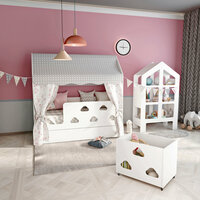 в форме домика, для детей, основание под матрас, с бортиком, с ящиком для белья, усиленная конструкция