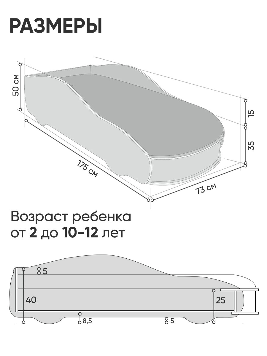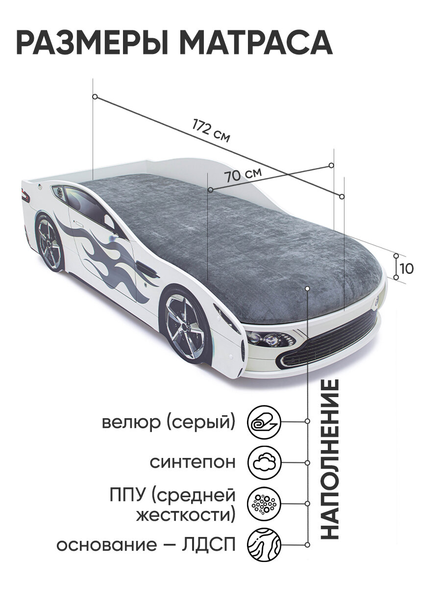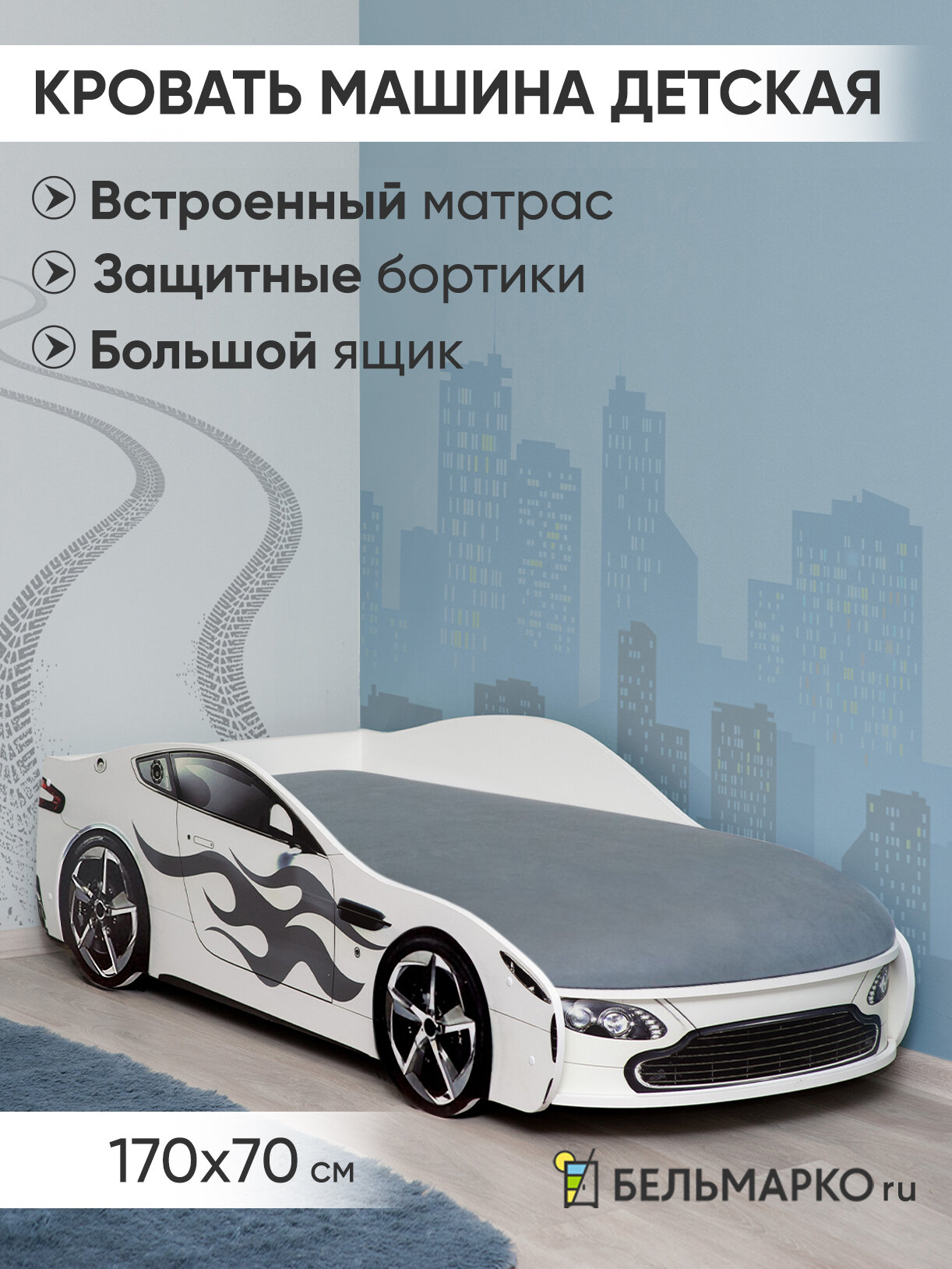 Детская кровать машина с подъемным механизмом, бортиком и матрасом Бондмобиль белый: сравнение цен, характеристики, фото, актуальное наличие и цены.
