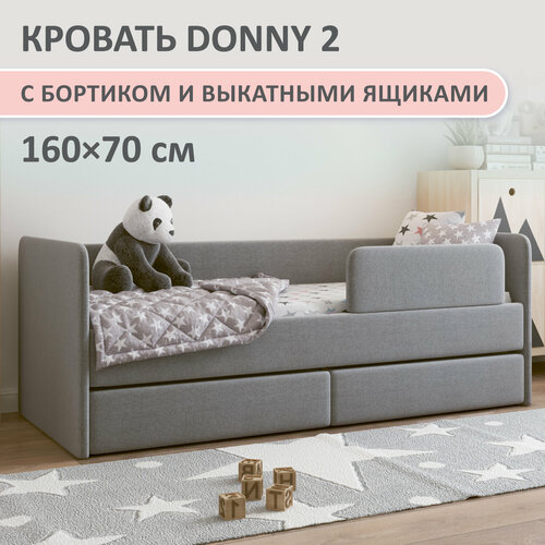 Детская кровать Romack Donny 2 70×160 с бортиком и выдвижными ящиками цвет: серый рогожка: сравнение цен, характеристики, фото, актуальное наличие и цены.