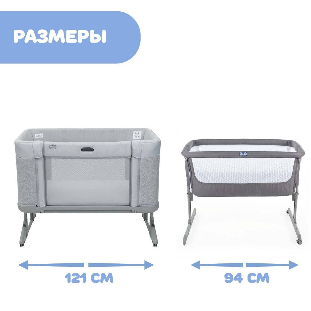 | Комплектация | Каркас с вертикальными опорами и съёмными ножками. Текстильная обивка и съёмная боковая стенка. Матрас со съёмным чехлом (110 × 55 см). Ремни для фиксации колыбели к родительской кровати. |