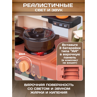 Функции детской кухни: Две конфорки (диаметр 7.5см) плиты с подсветкой и звуками готовки.